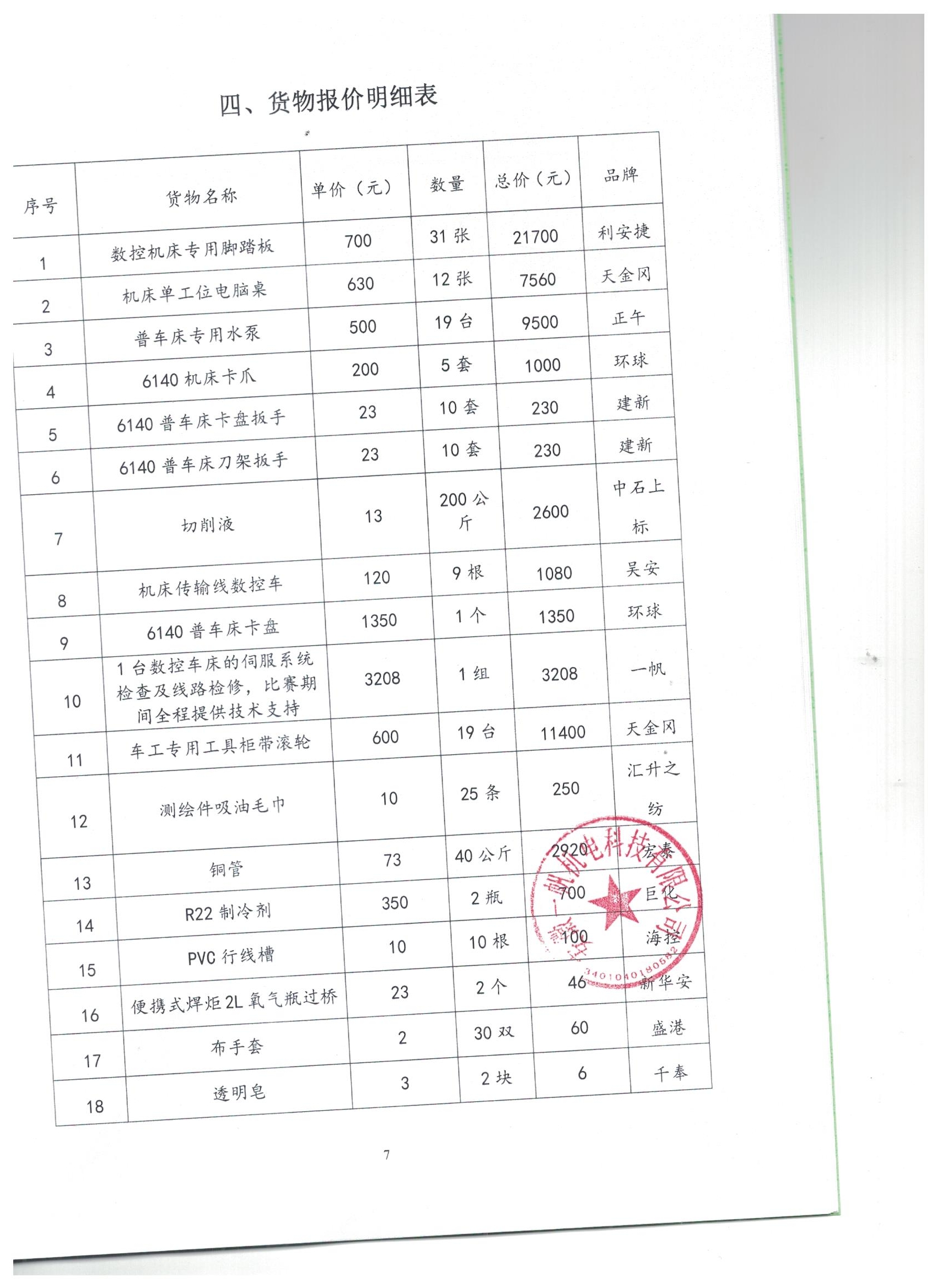 项目名称:阜阳工业经济学校机械类五个大赛项目物品及耗材采购项目(三次)