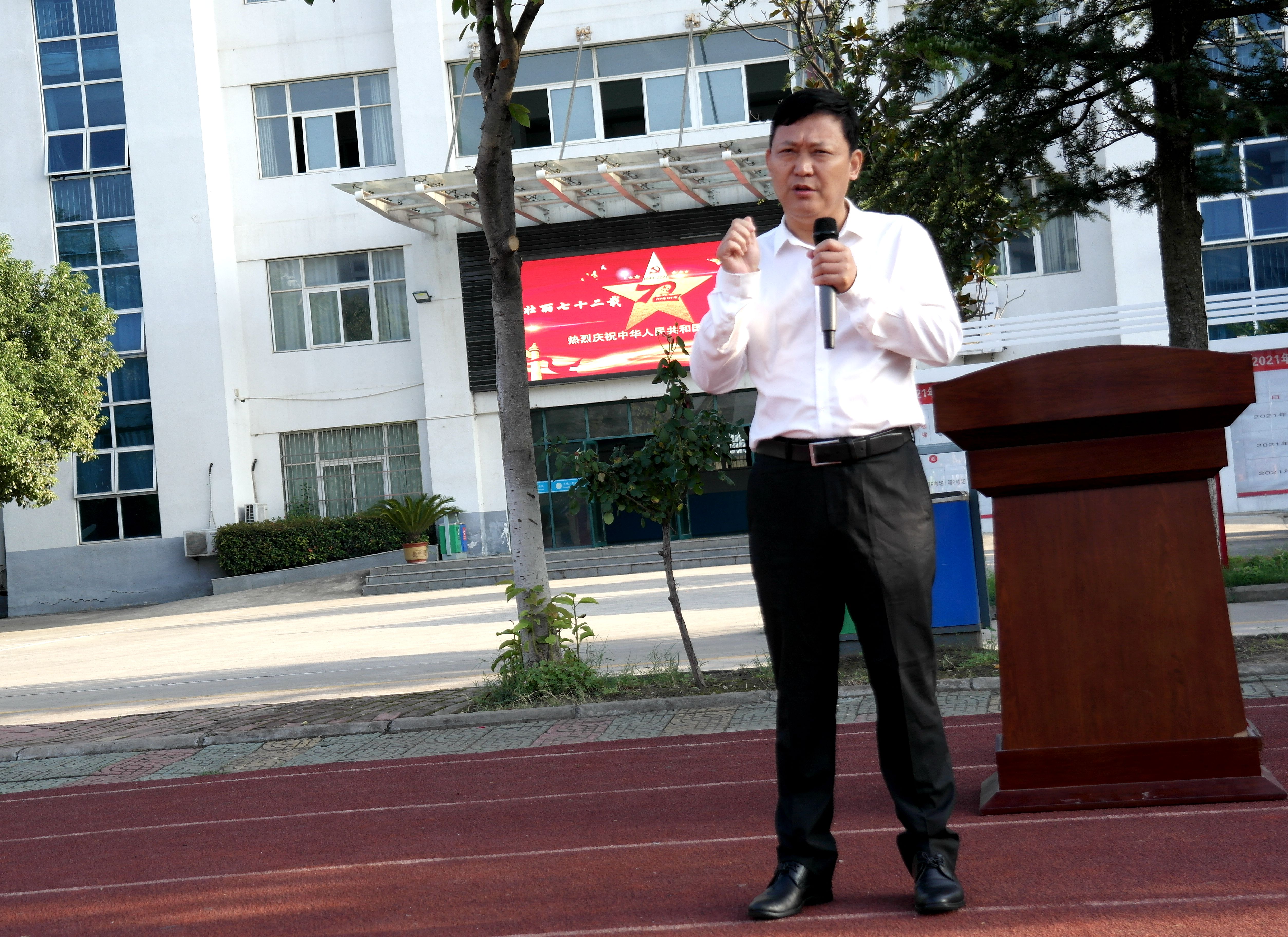 为庆祝中华人民共和国成立72周年,大力营造爱党爱国爱社会的浓厚氛围,弘扬伟大建党精神,砥砺爱国情怀,激励全校师生以更加昂扬的士气、更加饱满的精神,开启新学年、奋斗新征程。9月30日上午,在阜阳工业经济学校南校区和东校区隆重举行“请党放心、强国有我”主题升旗仪式。全体师生4000余人参加升旗仪式。