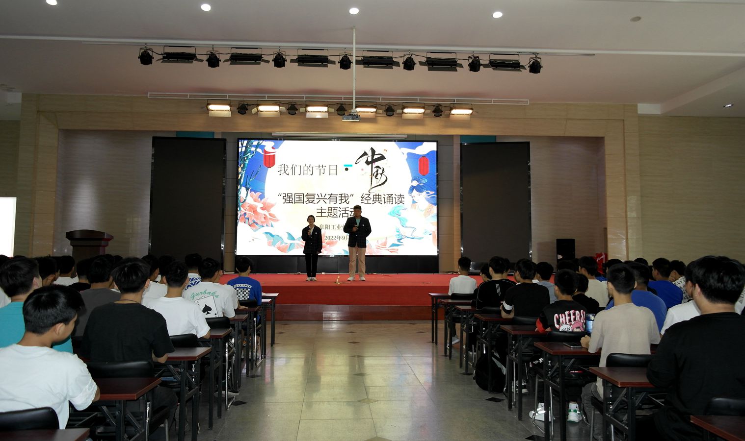 2022年中秋将至,为大力弘扬中华优秀传统文化,积极培育和践行社会主义核心价值观,9月9日下午,我校文明办与校团委、学生科组织开展了“我们的节日·中秋”暨“强国复兴有我”经典诵读主题活动。