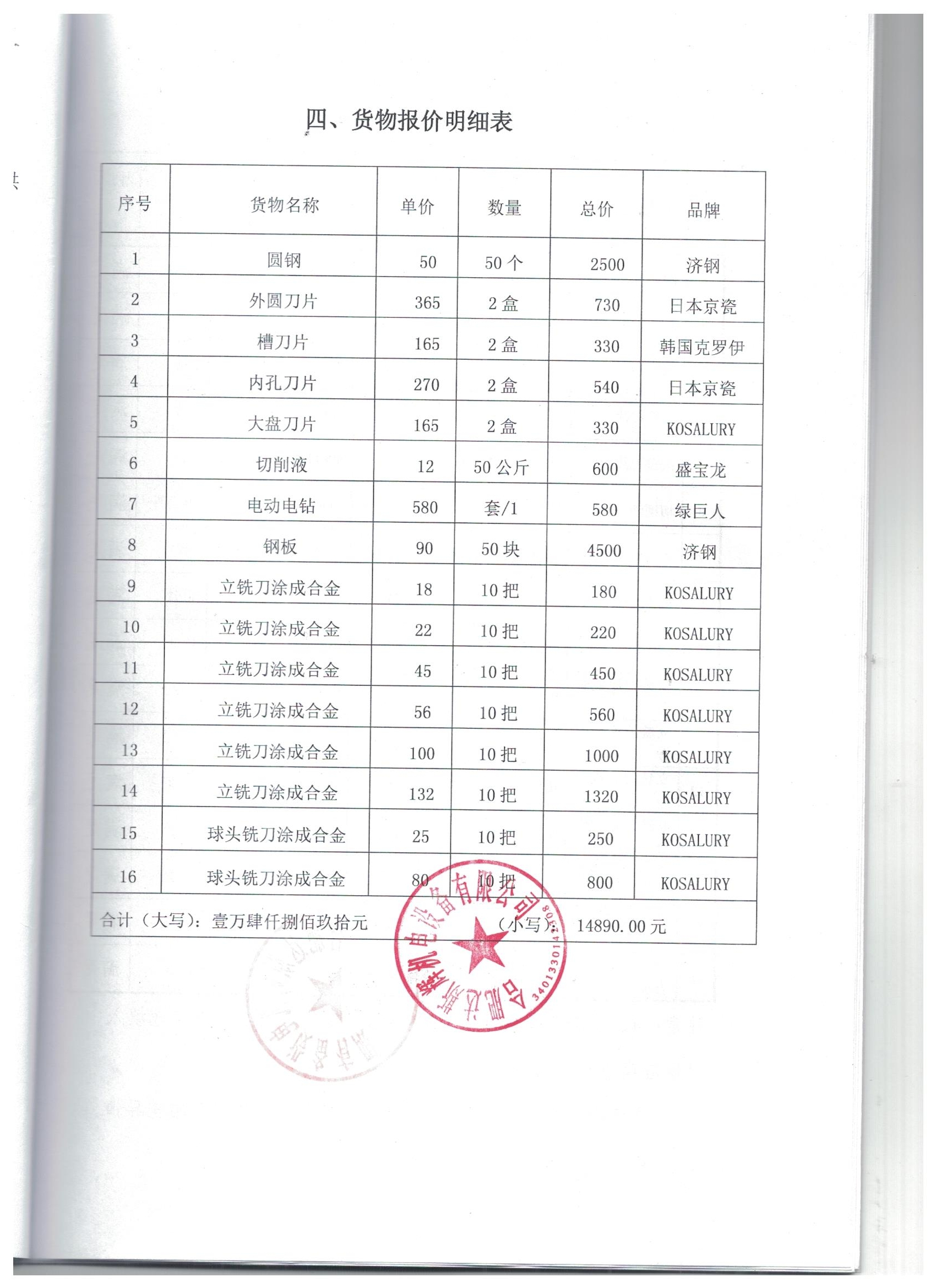 阜阳工业经济学校数控车、铣、模具及综合加工项目耗材采购项目成交公示
