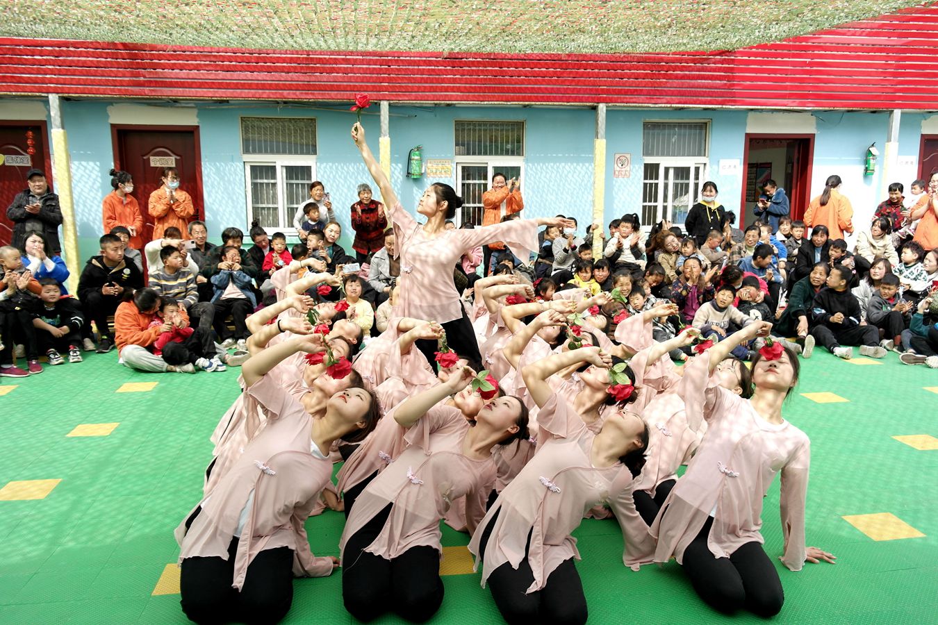 志愿者们到达校园时受到了早已在操场等侯的孩子们热烈欢迎。志愿者来到孩子们的中间和他们进行亲切的交流,有的志愿者教他们唱歌,有的志愿者教他们跳舞……当被问及要如何回报父母与老师时,这些儿童的回答虽然简单且略显稚气,但从响亮,坚定的声音看得出来他们是认真的,发自内心的。从他们些许含糊不清的字句中,志愿者们感受到了他们对父母与老师深深的爱。