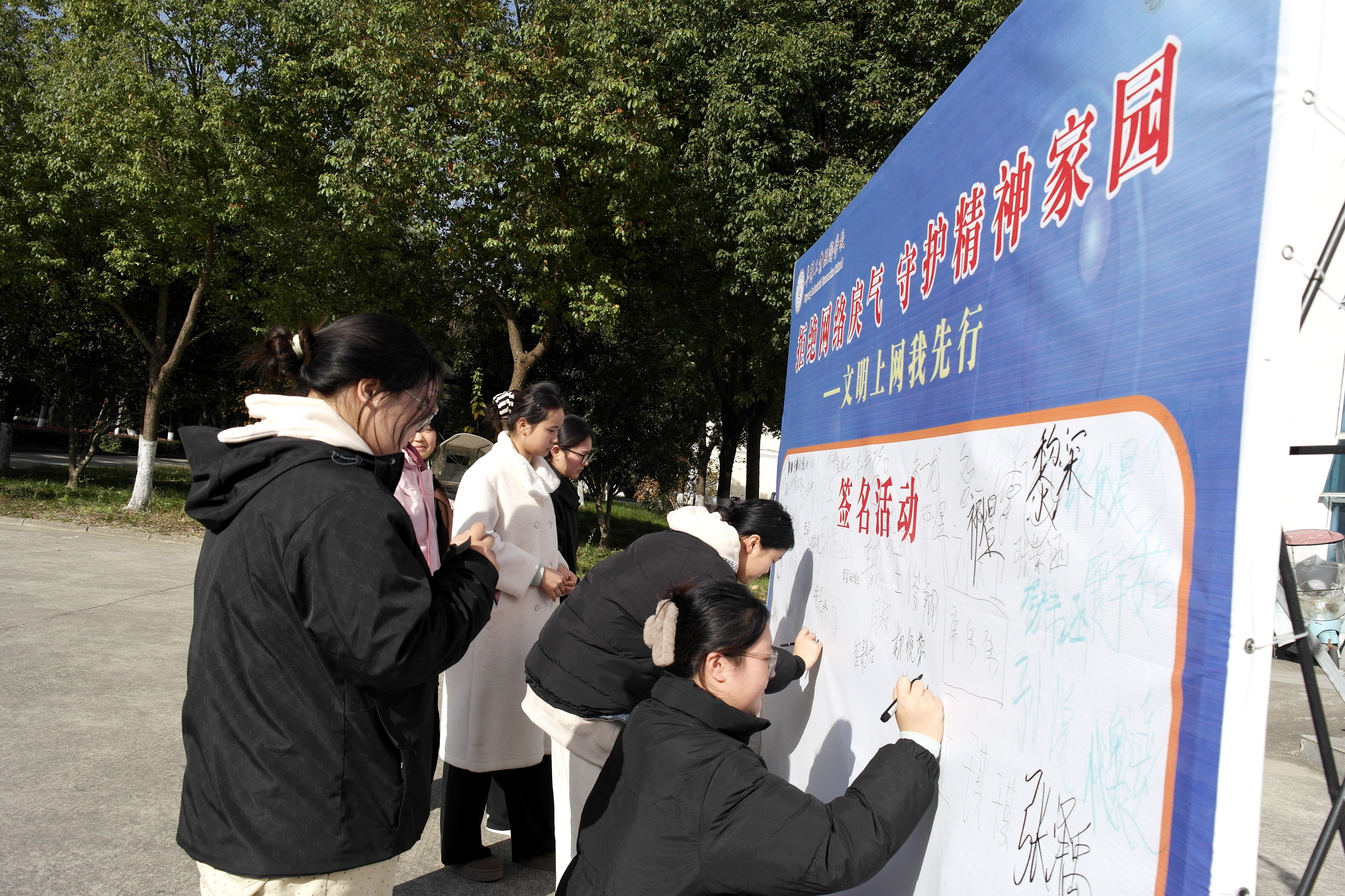 11月25日上午大课间,主题签名活动如期举行。师生们郑重签名践诺,立志抵制网络戾气与不良信息,坚守文明底线,争做文明上网践行者、网络文明守护者。