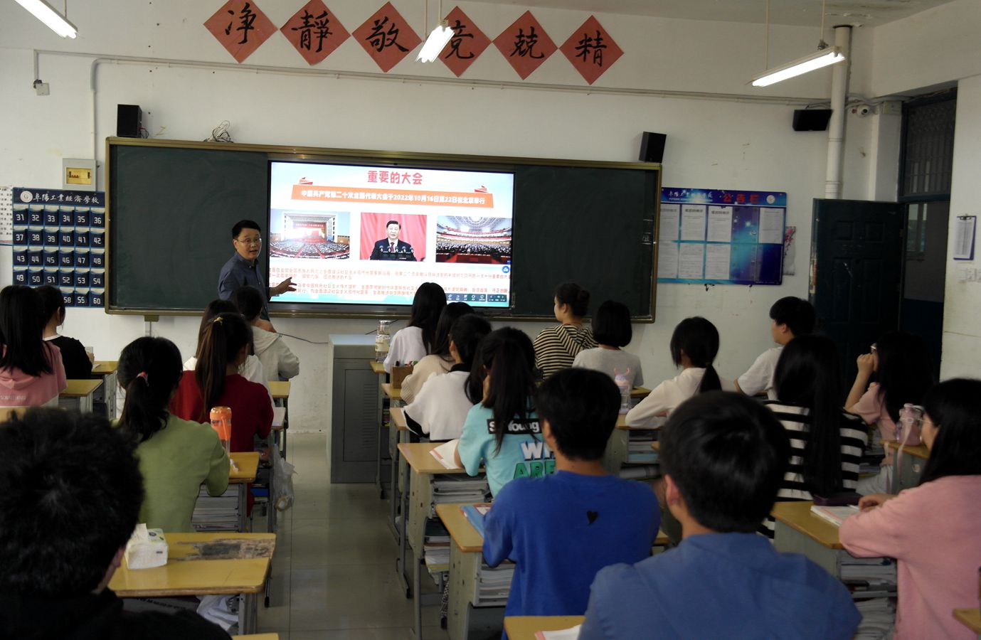 为深入学习宣传贯彻党的二十大精神,教育引导广大青少年增进政治认同、思想认同、情感认同,坚定理想信念,筑牢感党恩、听党话、跟党走的意识。近日,我校教务科和相关学科教研组组织开展党的二十大精神宣讲进班级活动。