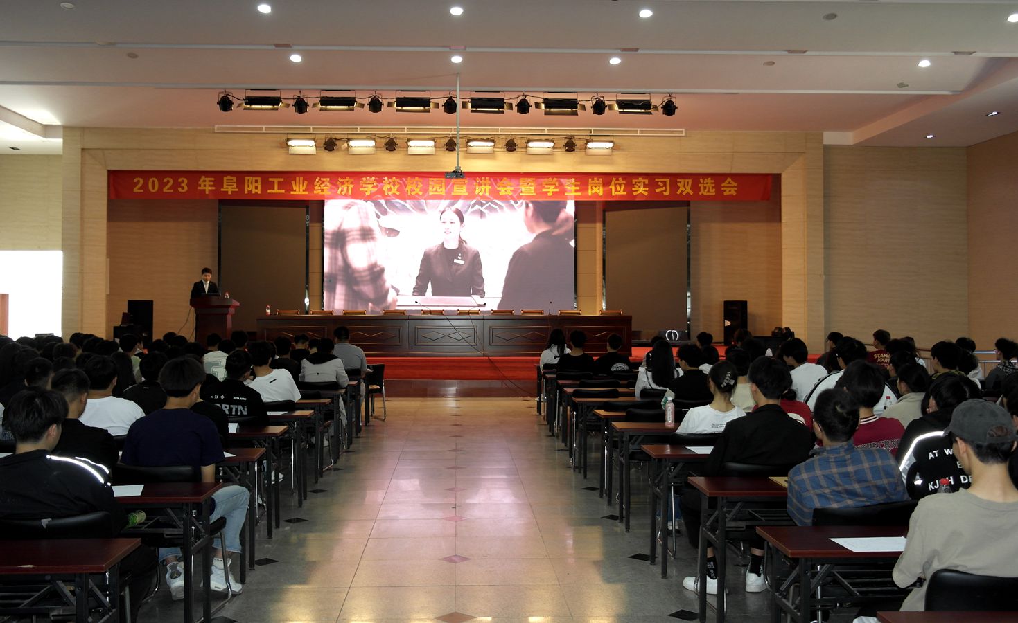 为贯彻落实习近平总书记对职业教育工作的重要指示精神,规范和加强我校岗位实习工作,维护学生、学校和实习单位的合法权益,培养学生良好的职业道德和诚实守信、团结协作的精神,同时为在校学生寻求更多就业实习机会,5月9日,2023年岗位实习宣讲会在南校区多功能报告厅成功举办,近500名学生、19家招聘单位相关人员参加了此次活动。