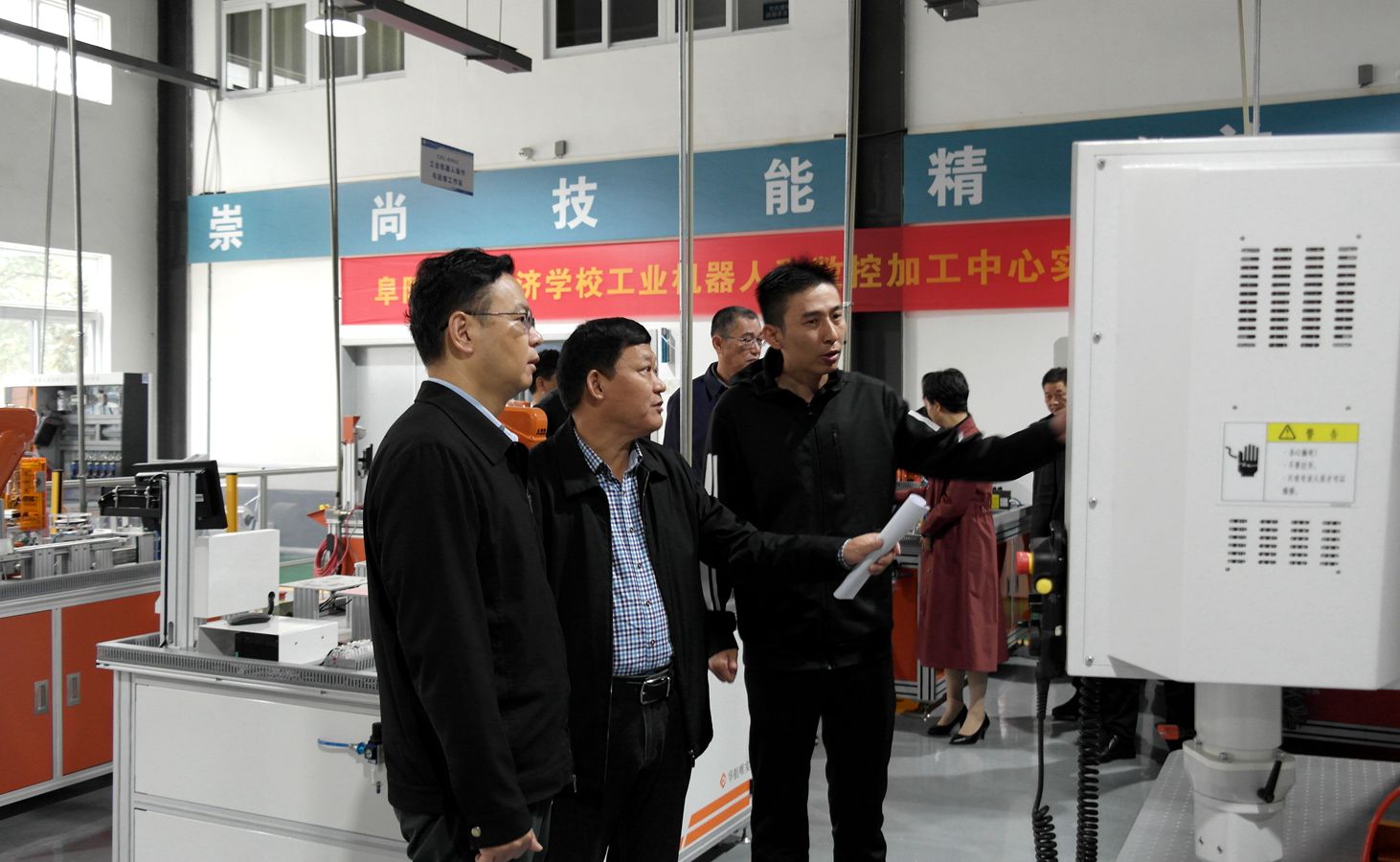 11月9日上午,市委副书记、政法委书记李军、市委副秘书长丁思彬、市委教育工委书记、市教育局局长齐明砾一行到阜阳工业经济学校调研指导工作。