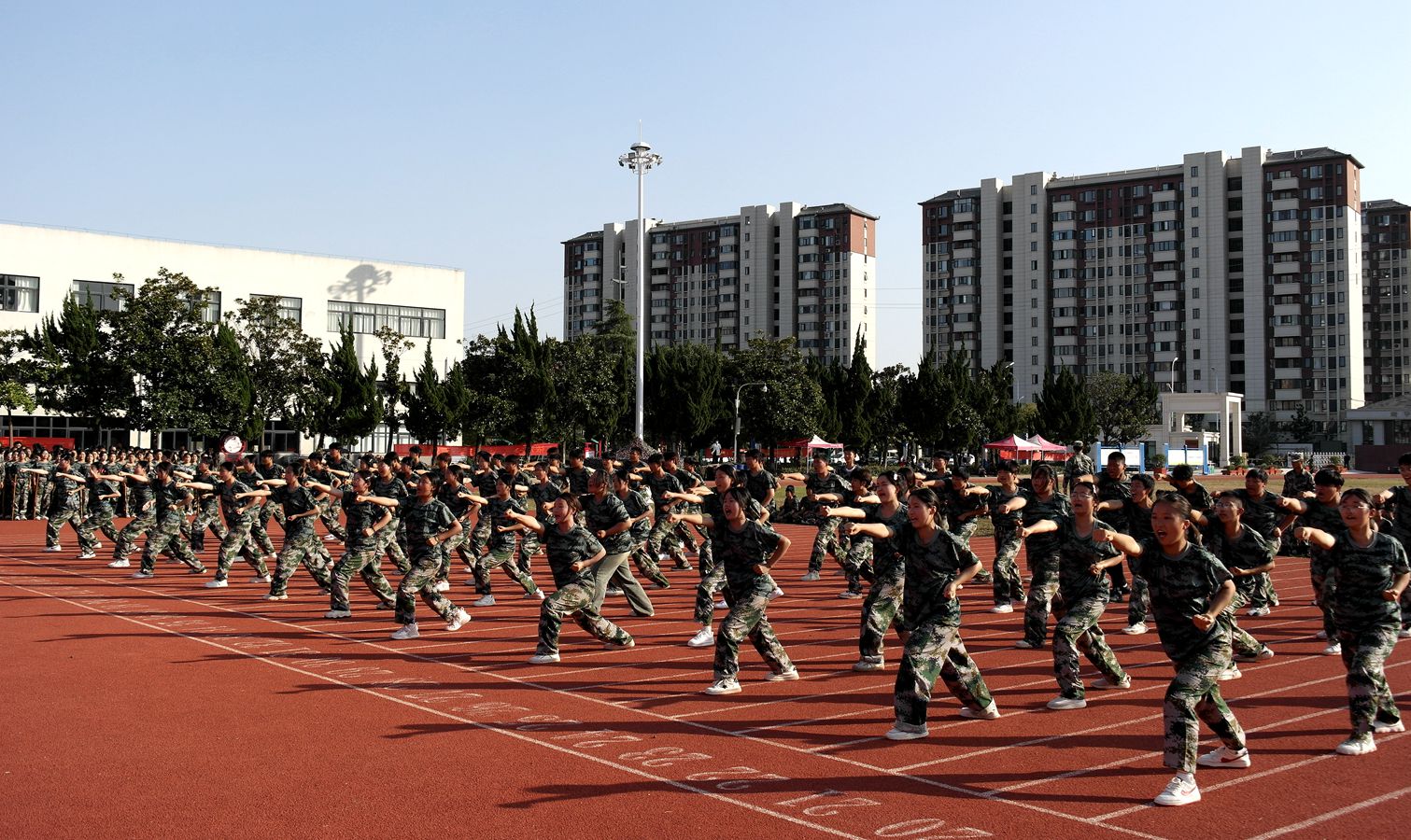 对新入学的学生进行军事训练,是全面贯彻党的教育方针,推进素质教育、国防教育的重要举措。我校一贯重视新生军训工作,在军训过程中,注重提升学生国防素质、综合素质和爱国情怀。