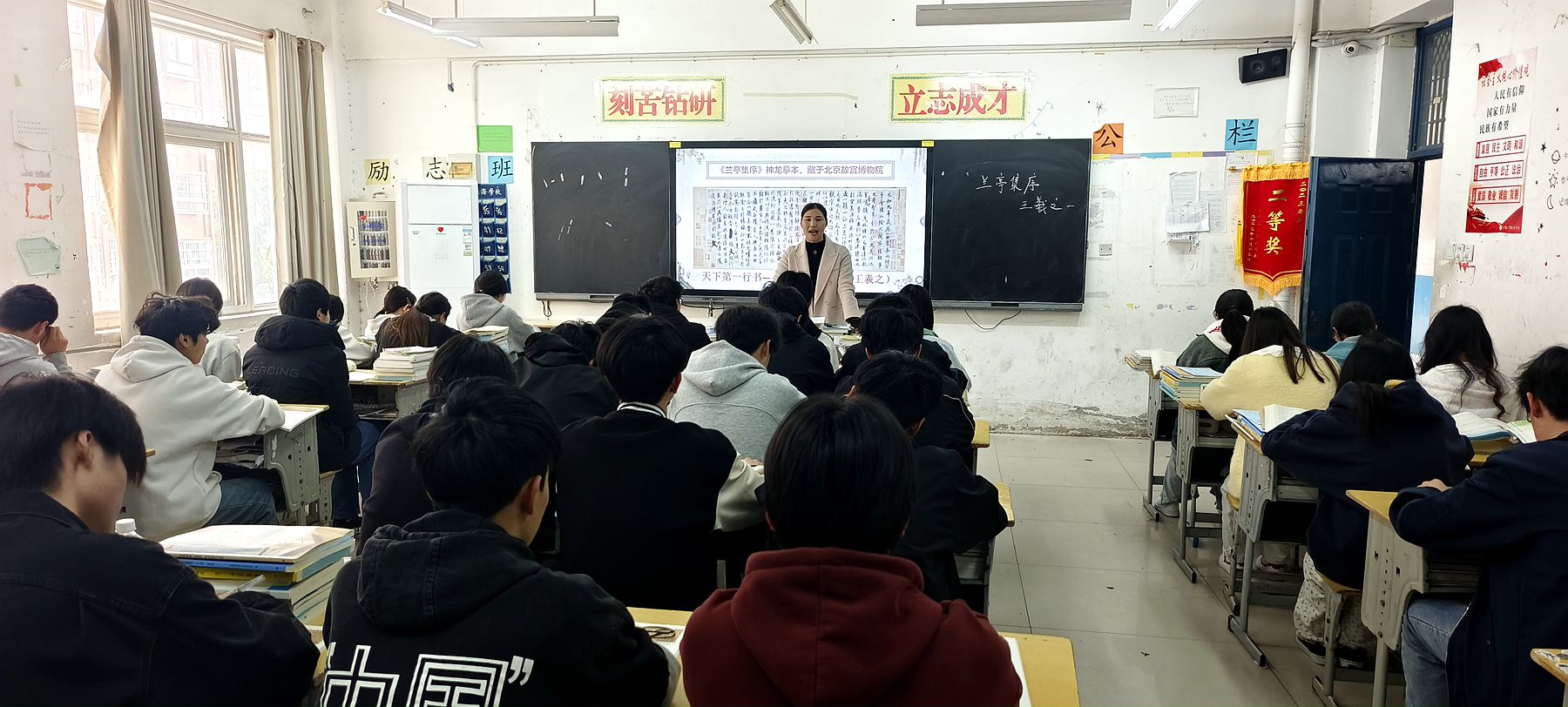 4月3日上午第1节课,闻小娜老师在2023级网络技术班开展《兰亭集序》公开课示范教学。闻老师以清明节扫墓祭祖的习俗引导学生思考其中蕴含的感恩与传承精神。课堂上,通过对比王羲之对人生的哲思与现代人对先辈的追忆,学生深刻体会到生命的宝贵与责任,帮助学生树立尊重生命、珍惜当下的积极人生态度。