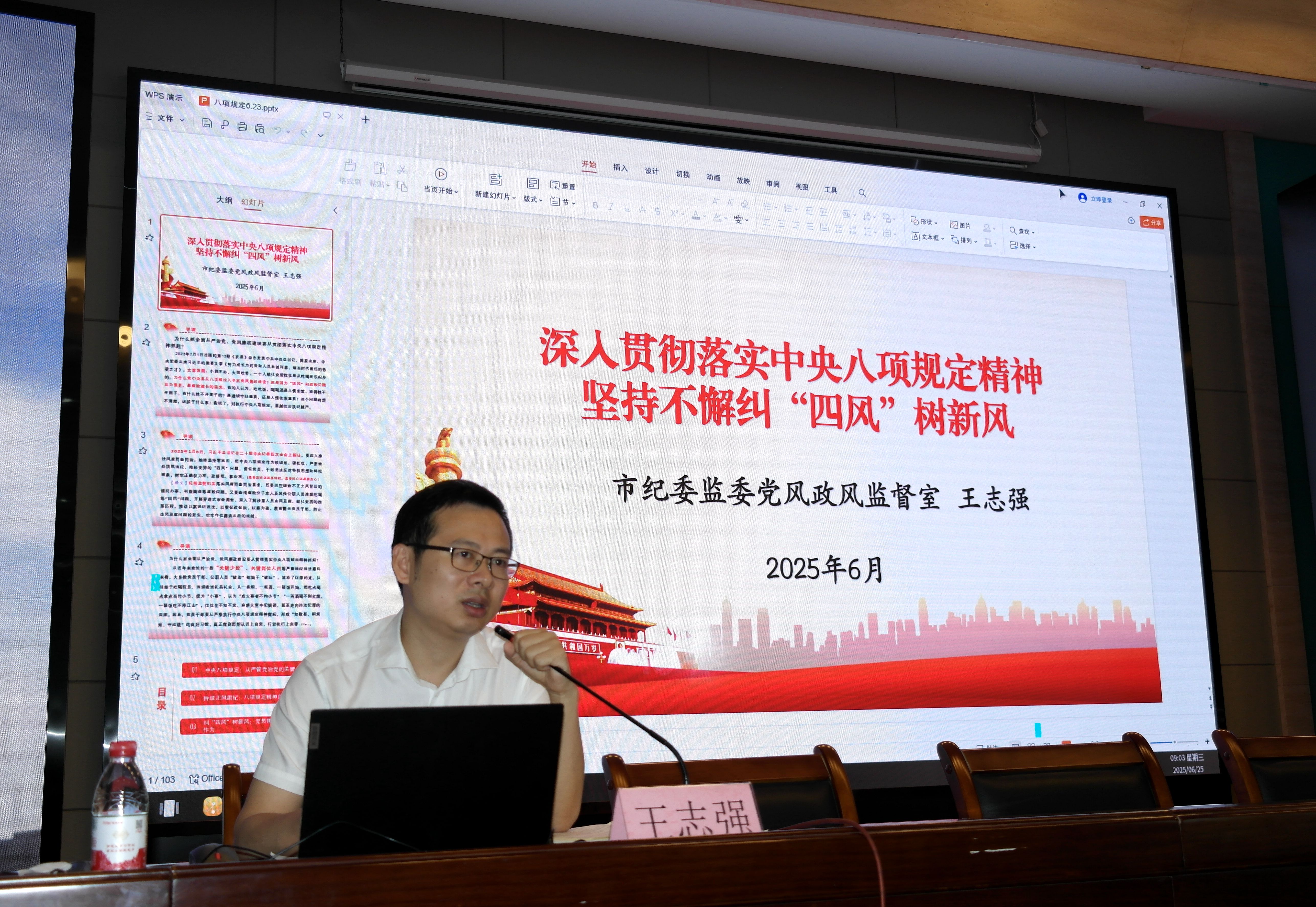 会上,阜阳市纪委监委党风政风监督室副主任王志强带来《深入贯彻落实中央八项规定精神 坚持不懈纠“四风”转作风树新风》专题辅导。他立足多年监督执纪经验,以教育领域典型案例为镜鉴,系统剖析违反中央八项规定精神的突出问题,对“四风”隐形变异新动向敲响警钟。重点针对“吃喝风”“送礼风”等顽疾,强调必须保持高压态势,筑牢拒腐防变思想防线,为全体教职工呈上一堂兼具理论高度与实践深度的警示教育课。