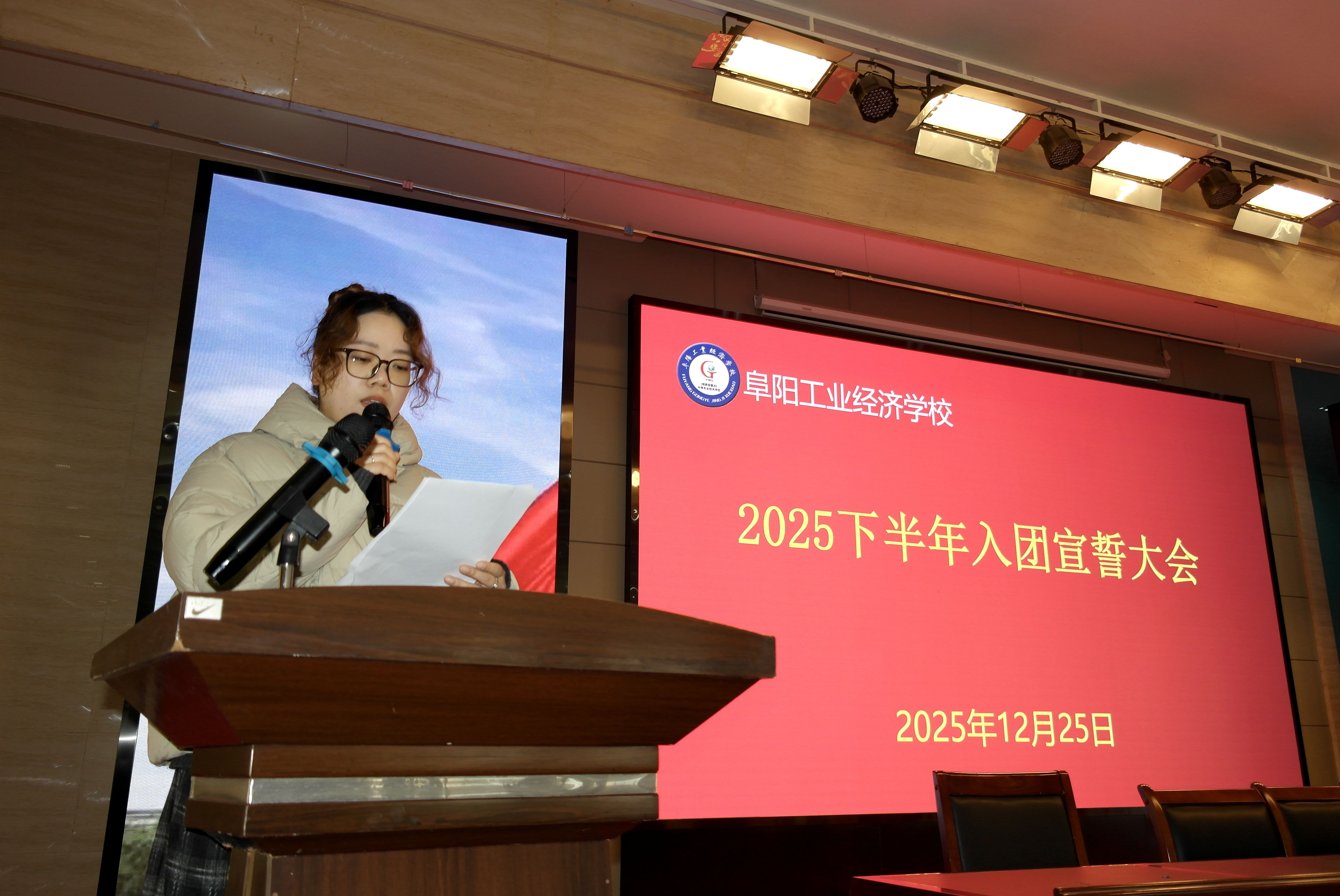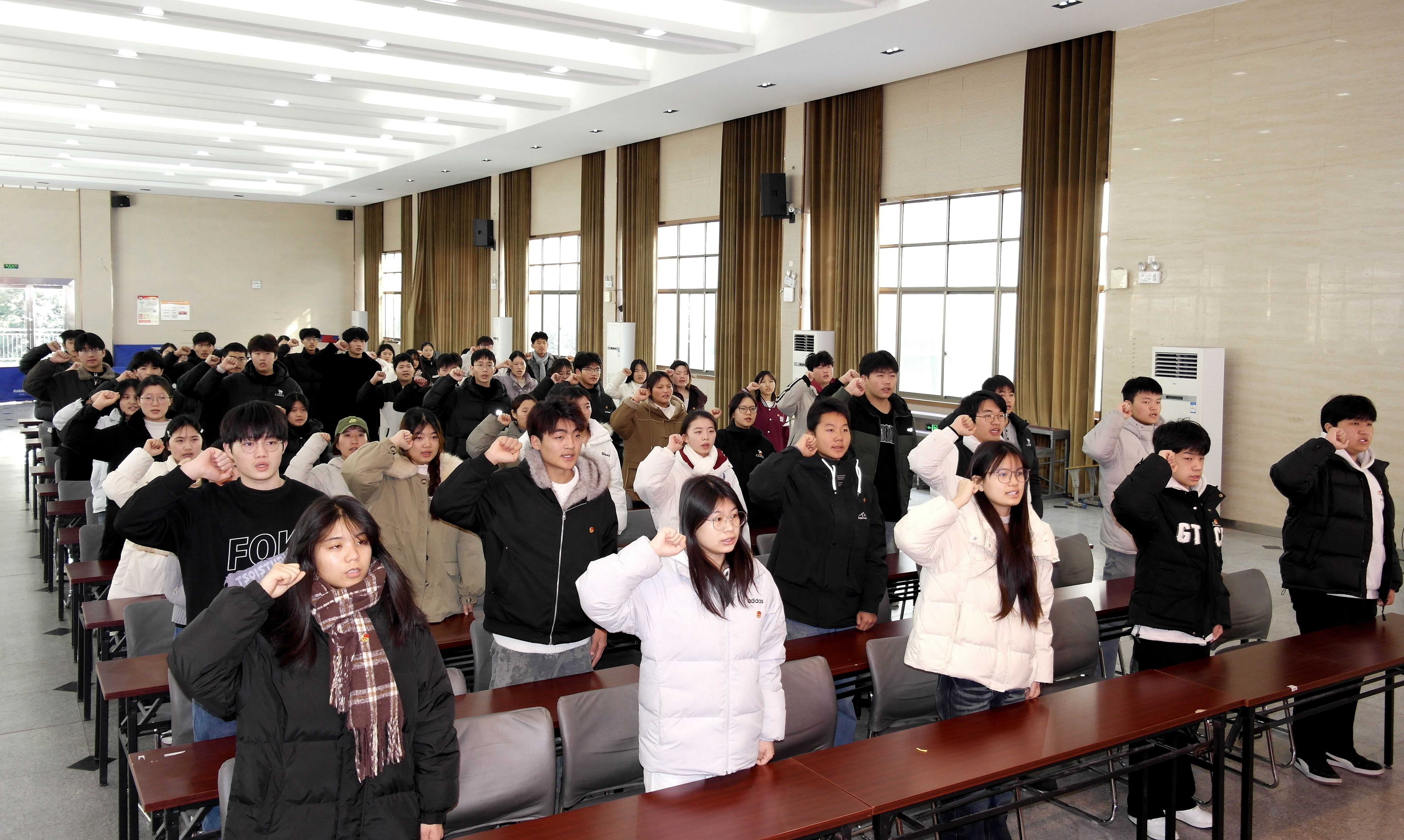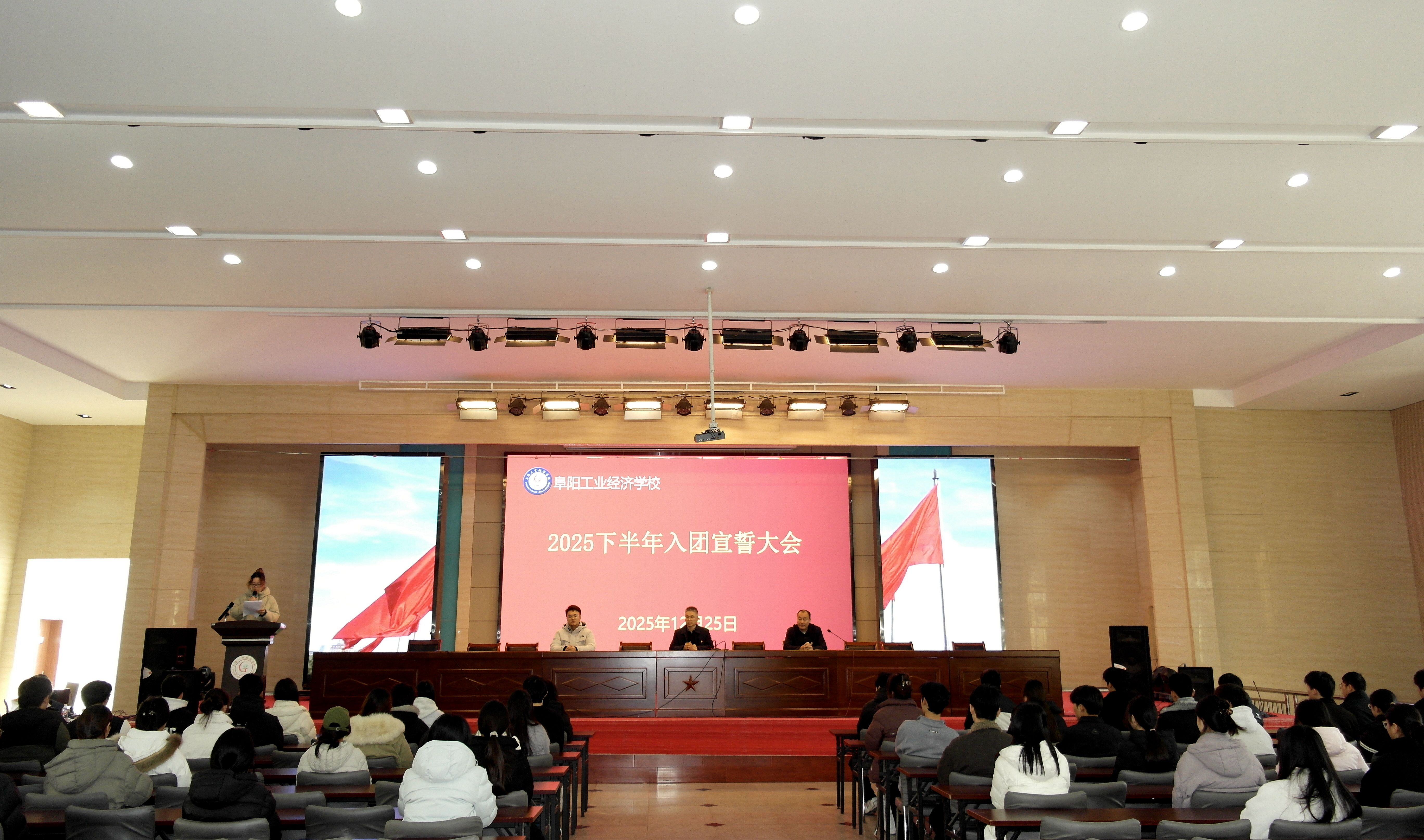 为凝聚青春磅礴之力、夯实团的组织根基,让新团员于入团仪式中坚定信仰方向、扛起青春使命。12月25日,校团委在南校区报告厅举行了阜阳工业经济学校2025年第二批新团员入团仪式。校党委副书记、校长孙杰,党委委员、副校长范峰、校团委老师及第二批全体新发展团员参加仪式。