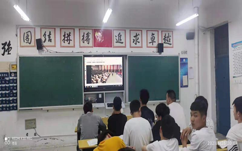 阜阳工业经济学校组织各班级学生观看“资助育人 .大国工匠进校园”活动
