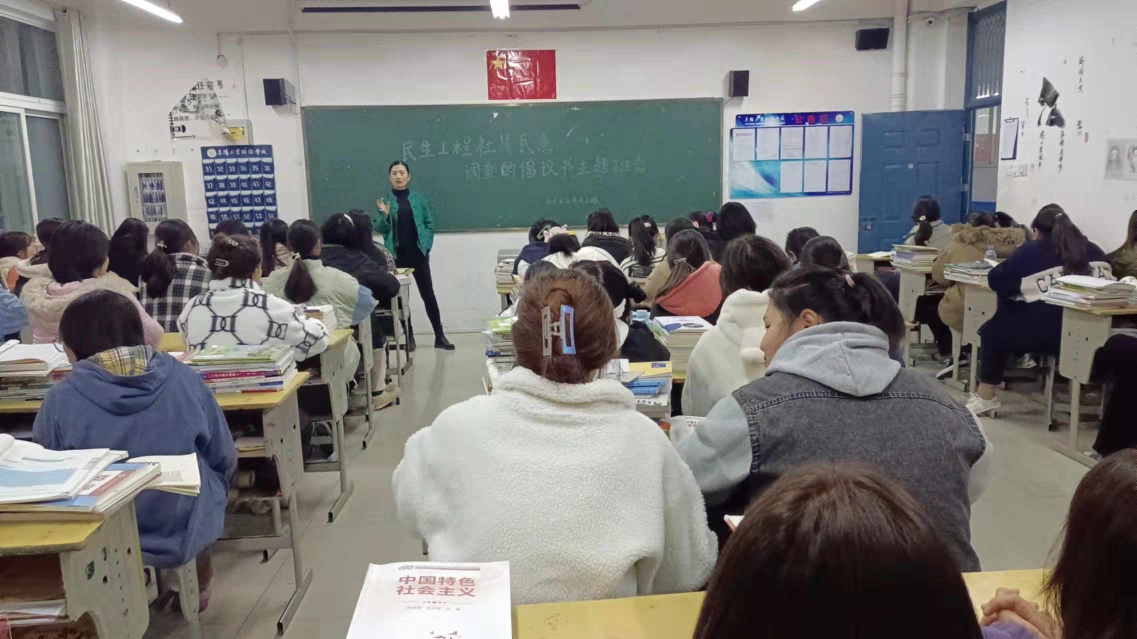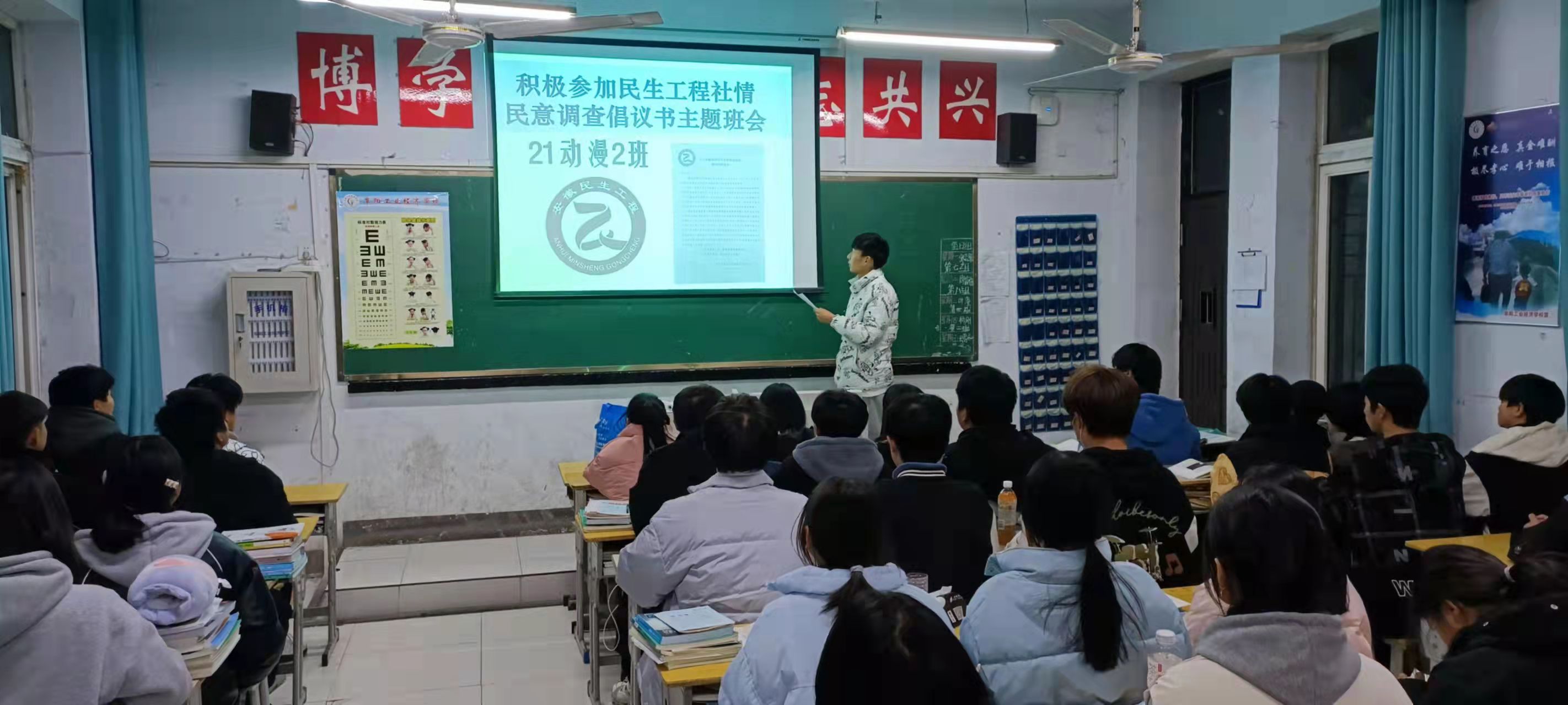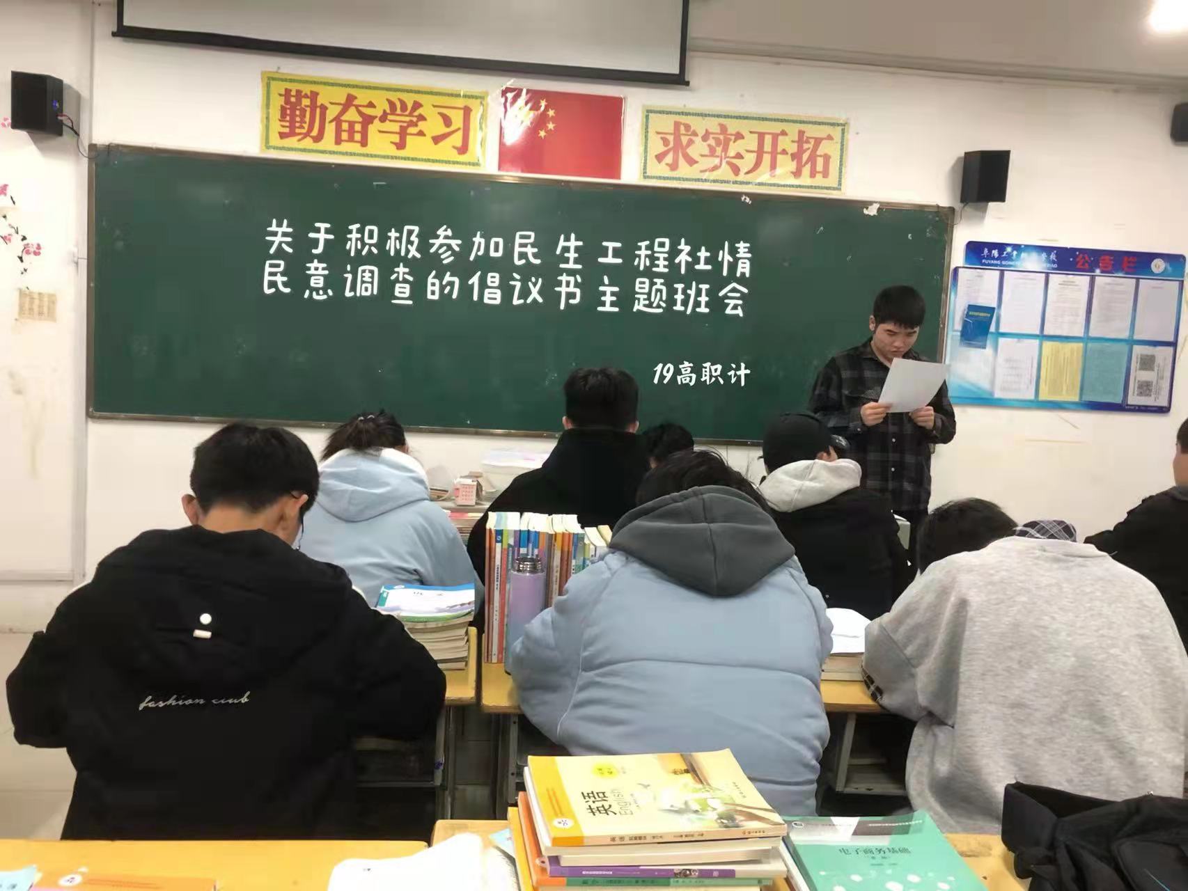 阜阳工业经济学校“关于积极参加民生工程社情民意调查的倡议书”主题班会