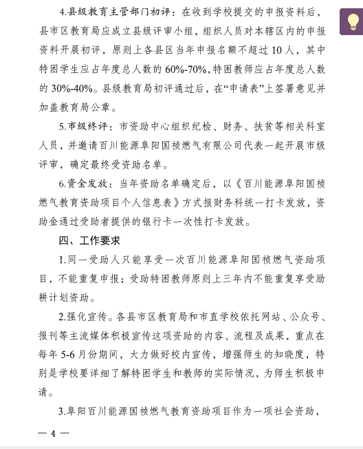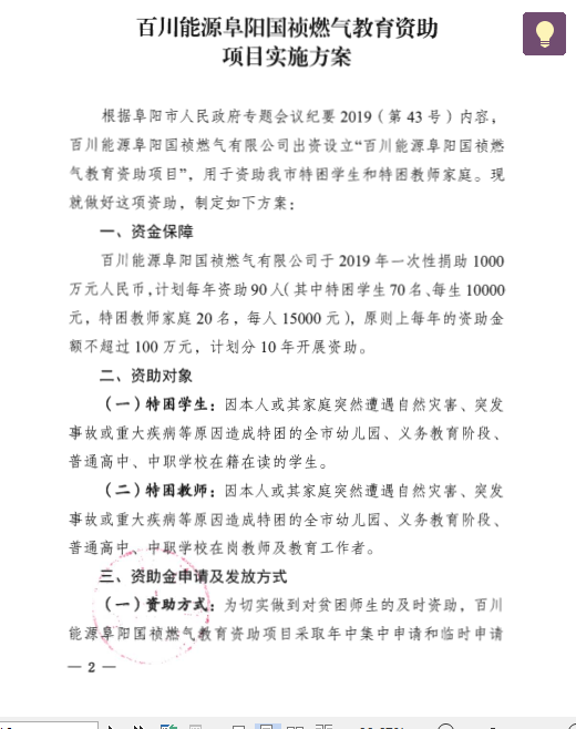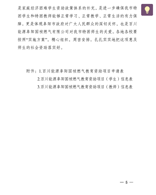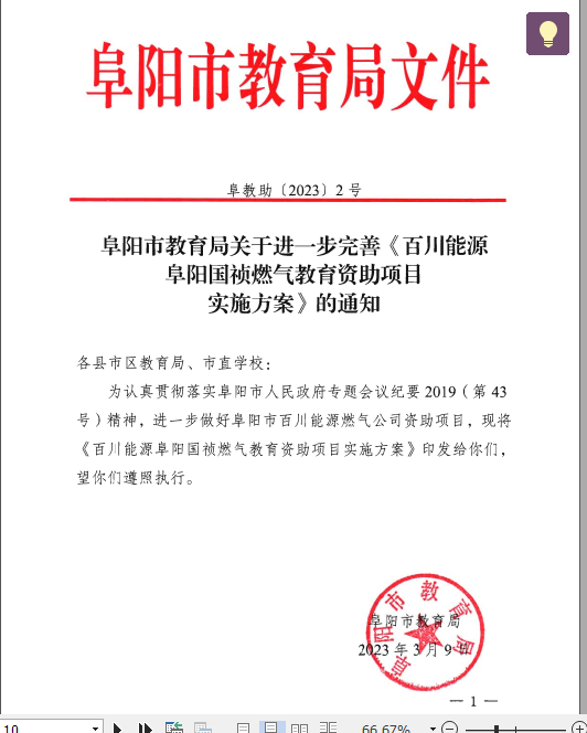 转发阜阳市教育局关于进一步完善《百川能源阜阳国祯燃气教育资助项目实施方案》的通知