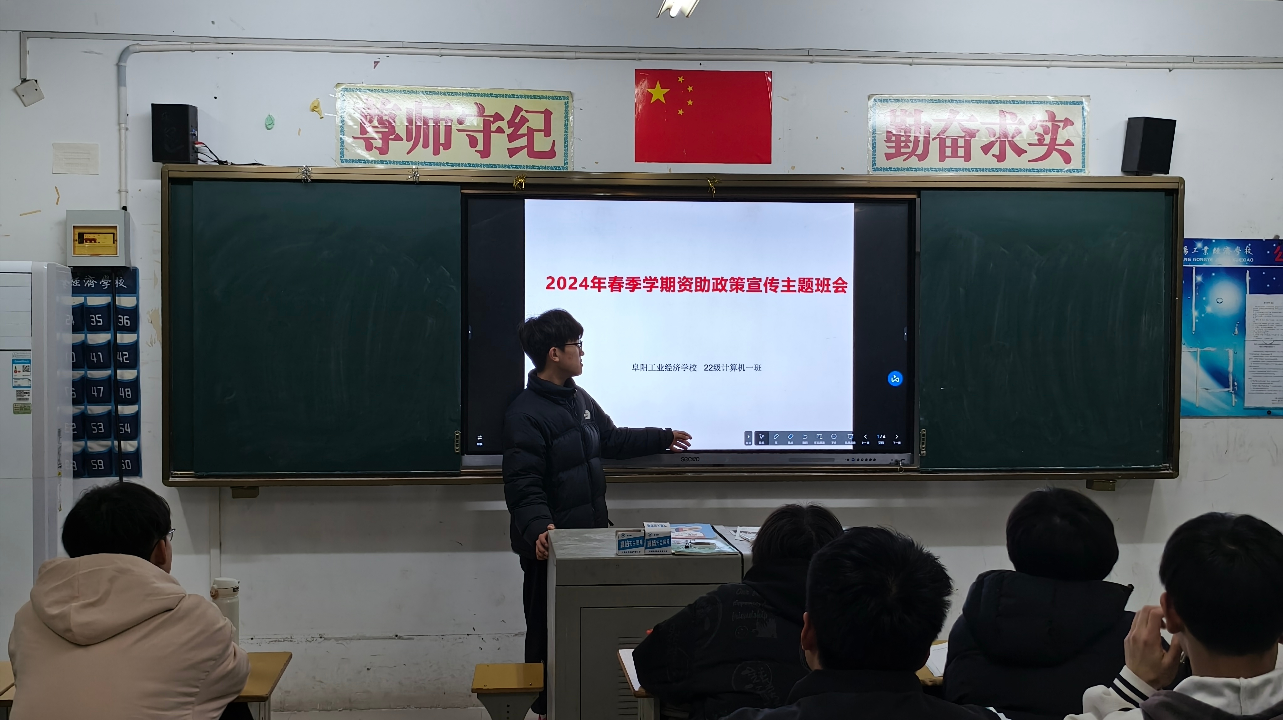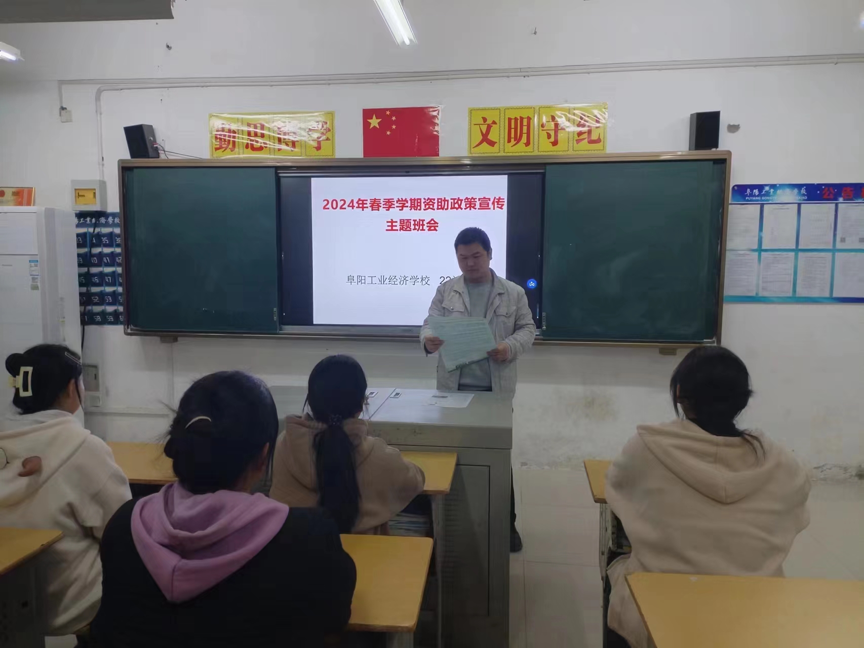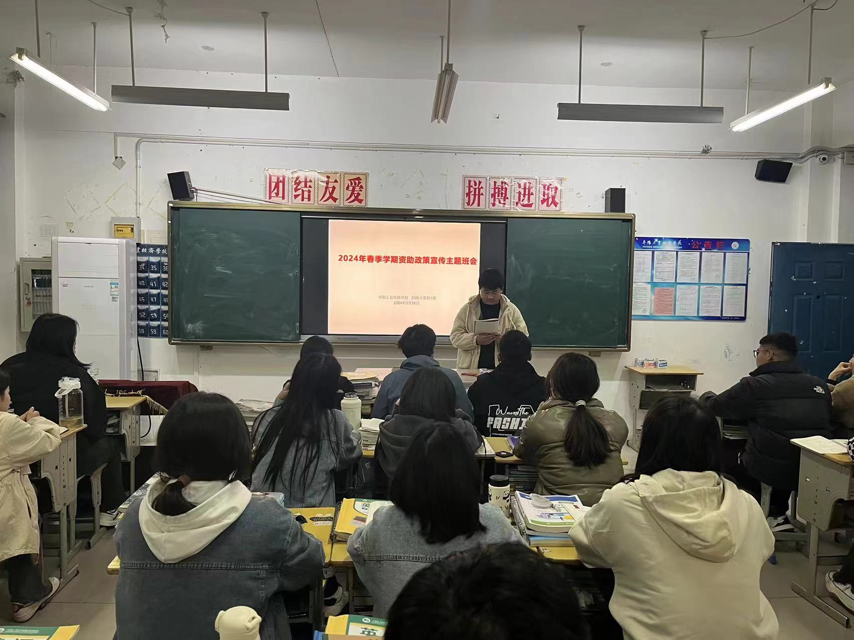 阜阳工业经济学校各班级本周利用晚自习时间开展了资助政策宣传主题班会活动。