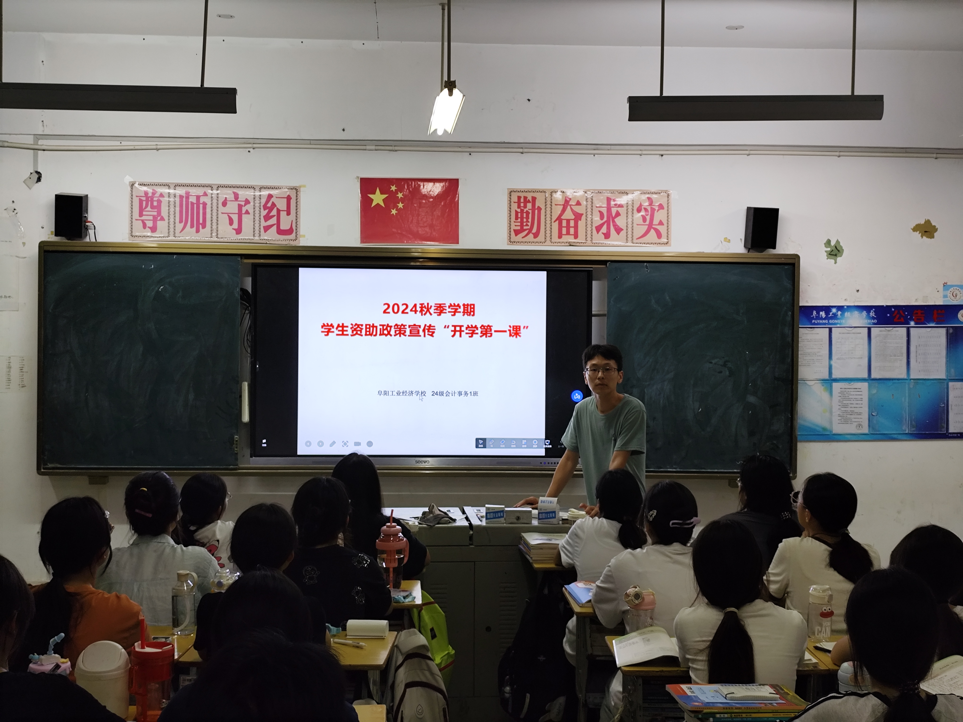 阜阳工业经济学校各班级本周利用晚自习时间开展了资助政策宣传“开学第一课”主题班会活动。