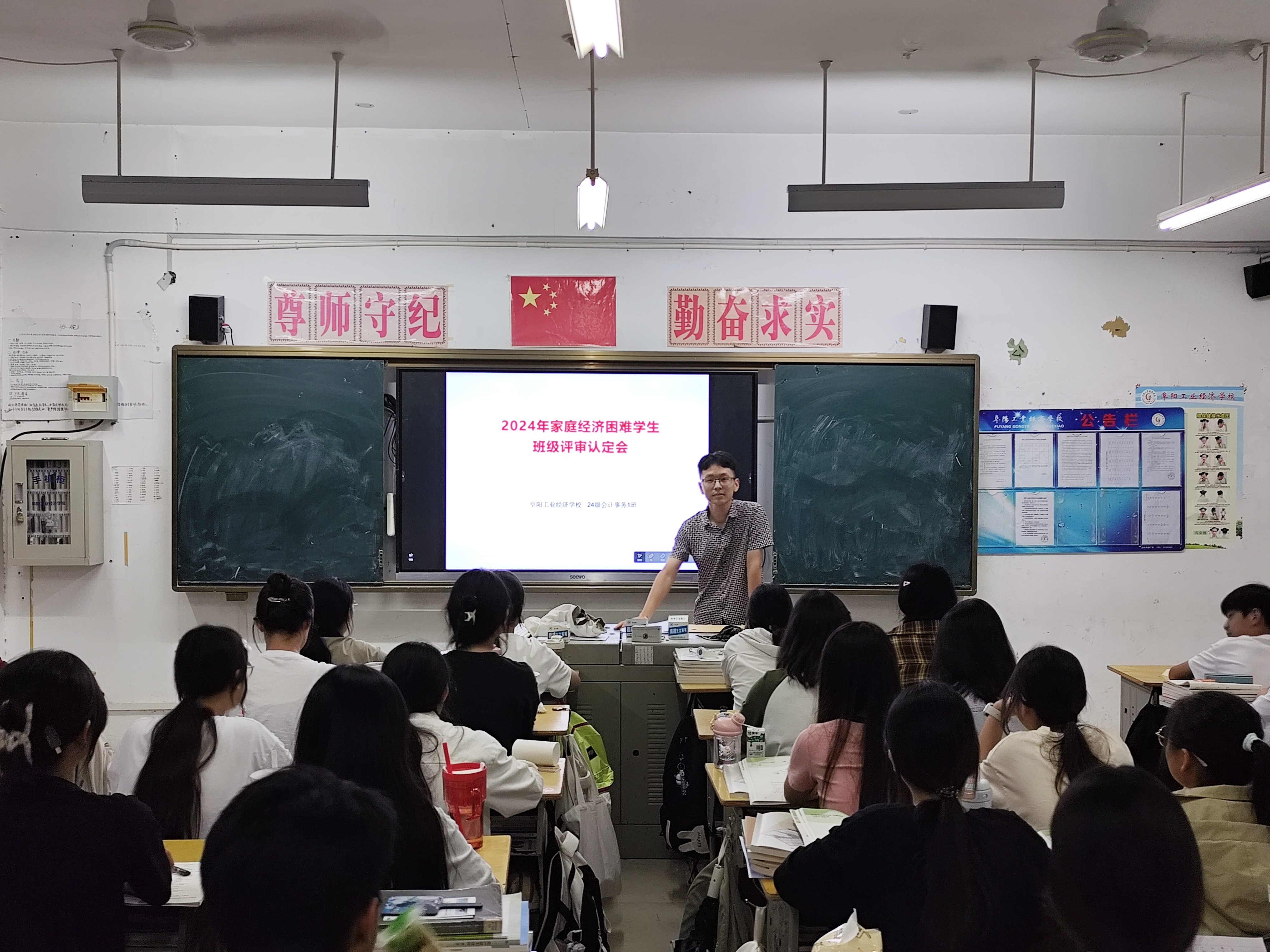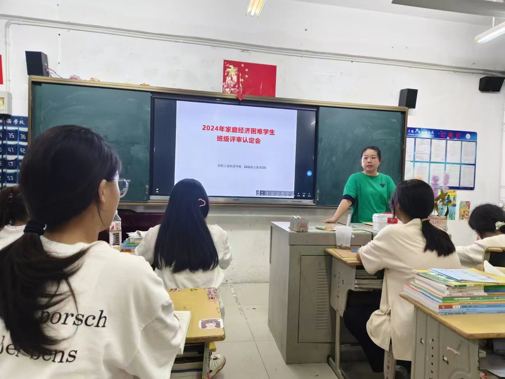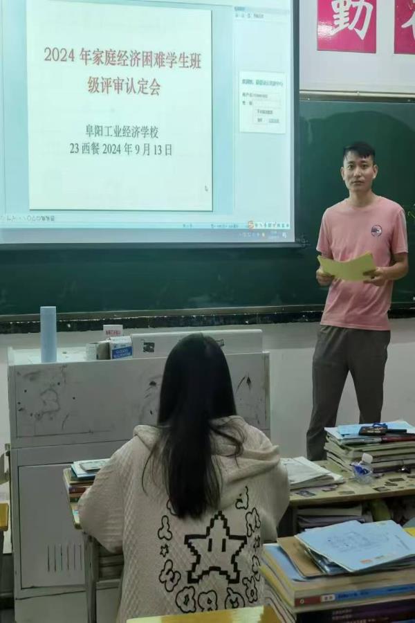 阜阳工业经济学校2024年秋季学期家庭经济困难学生班级评审认定工作正式启动。各班级利用晚自习时间召开国家助学金家庭经济困难学生评审认定会,班主任系统地讲解了国家助学金的认定办法、申请条件、标准、评审、申报流程及相关表格填写注意事项。