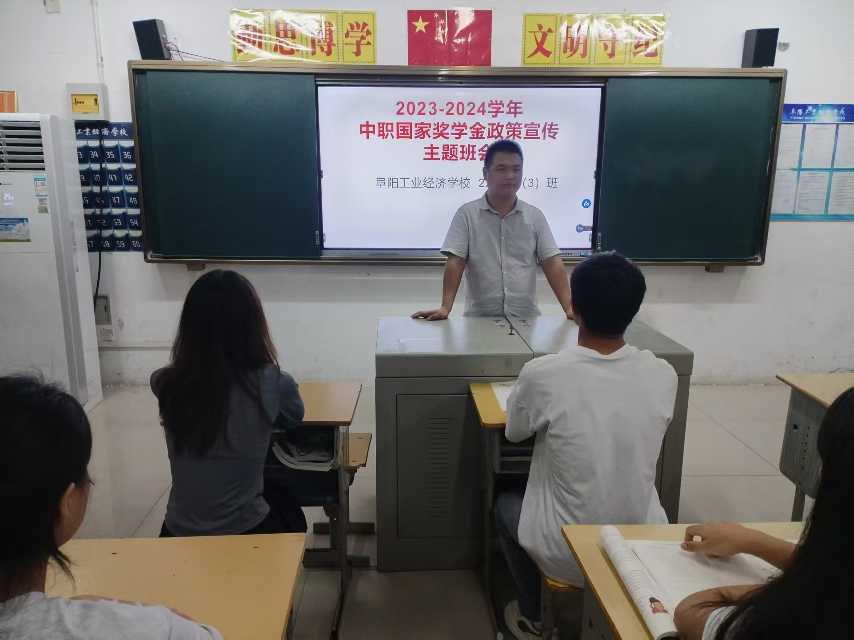 阜阳工业经济学校各班级按校资助办要求利用晚自习时间召开2024年中职国家奖学金政策宣传主题班会。班主任带领学生学习了国家奖学金的申请条件、评选标准、评审制度、申报流程及填表注意事项。并鼓励符合条件的学生踊跃报名,尽快办理奖学金相关事宜。