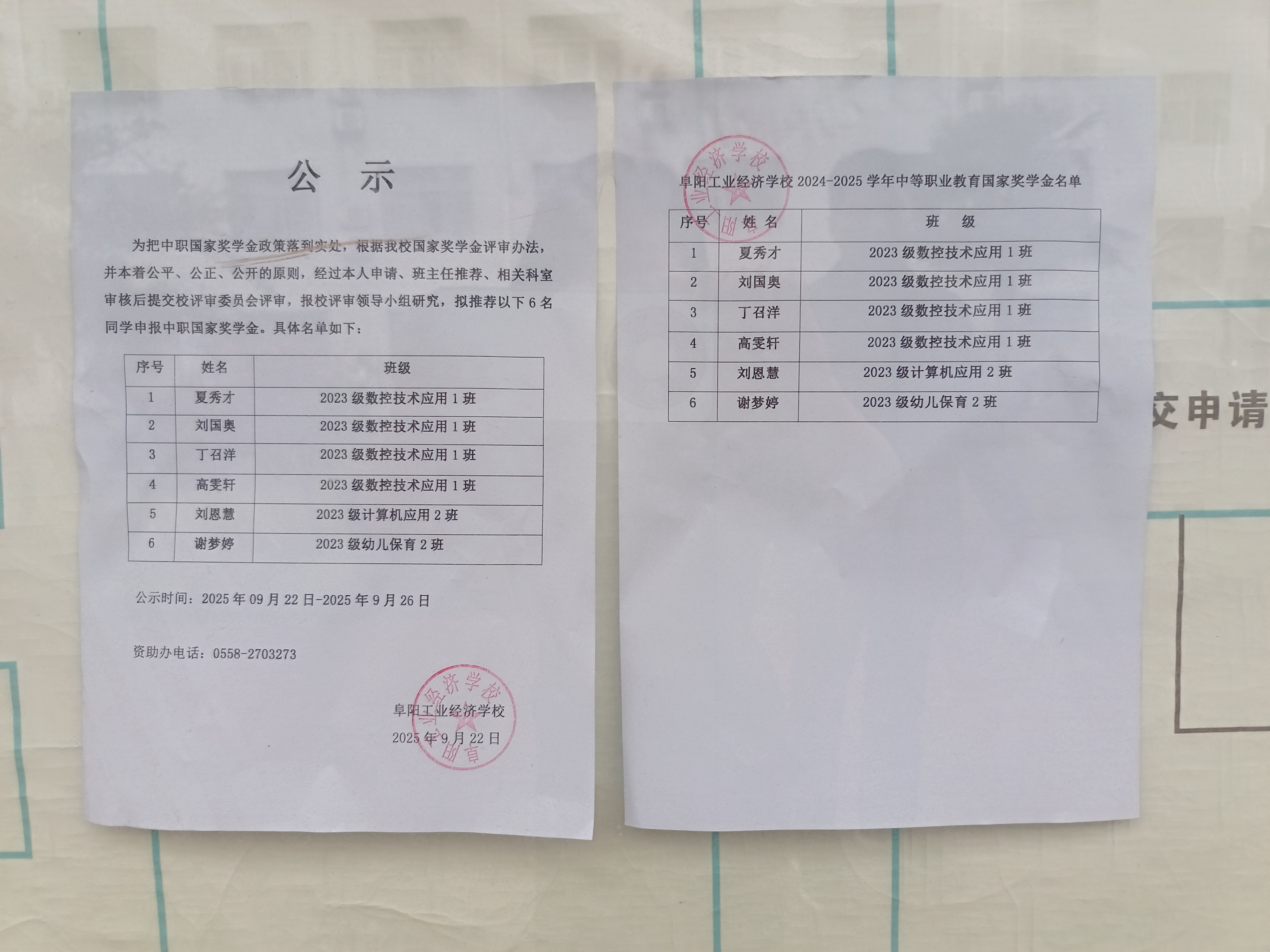 阜阳工业经济学校2025年国家奖学金公示